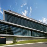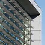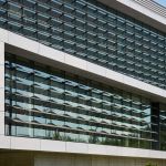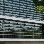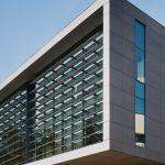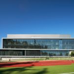 The ISB exterior cement-composite rain-screen cladding inspires a dramatic monolithic expression of two volumes twisting in the wind in response to the original and newer campus framework. Situated on a slope, the twisting volumes form a large, cantilevered expression that creates a protected outdoor area along the corridor while also framing a gateway from the sports and recreation campus district to the school’s main campus.