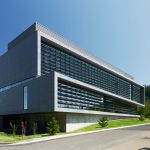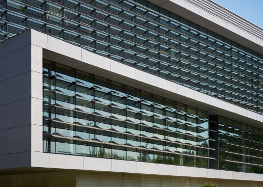 The building massing is sited as a knuckle with the bottom two floors twisted from the top two floors to create a central building on a hill that serves as the foundation of the school’s growing STEM district. Additional buildings can be added to the north and the south. On the north side of the building, wood rain-screen cladding warm ISB’s exterior, further binding it to the main campus. This is the only exterior accessible route from the south end of the campus, adding to its importance in the greater pedestrian network. A bridge also connects ISB to an existing biology building.