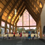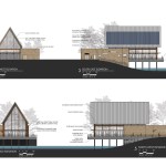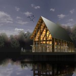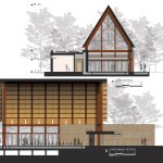 The site was carefully chosen to take advantage of the views, sun, and breeze while creating a special experience for those who visit the Chapel. The experience begins at the existing parking lot, slowly moving toward the building, leaving the busy, noisy everyday life for a place that can be inspiring, quiet, serene, fun, or whatever else that one is searching for. The building is designed using a simple palette of materials with the utmost flexibility in mind and the ability to accommodate a variety of functions. The building’s exterior skin along the main space is almost all glass to take advantage of the beautiful views, the trees, the sun, the moon, the breeze. Glass doors can be opened to allow nature to enter the Chapel while the surrounding deck allows people to move outside. For Chapel use, the tall volume makes one feel inspired and small in the universe…the same feeling of being in a European cathedral. For other functions, the building is designed so that multiple functions (indoor or outdoor) can occur simultaneously by operating doors to further expand the spaces.