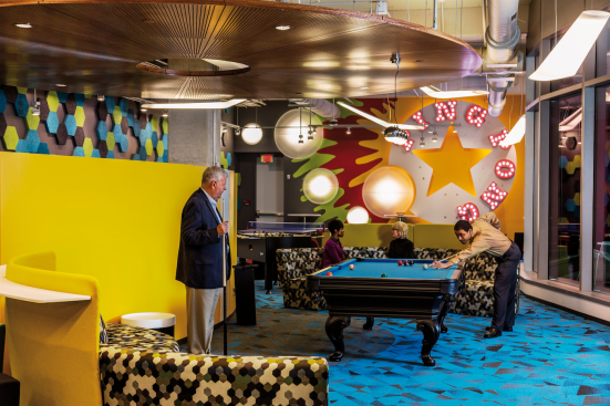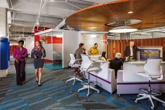 – A variety of spaces on a variety of levels for employees to move around and create scrums, or teams.