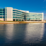 The layout is designed to promote productivity and collaboration between Intergraph’s more than 1,000 local employees. Multiple spots are scattered throughout the facility to encourage impromptu meetings and conversations between co-workers and clients. The state-of-the-art facility also features a barista coffee station, more than 1,000 parking spaces, charging stations for electric vehicles, a lake with bass, carp and catfish, webinar rooms, a binary clock, MegaBytes Café and more.