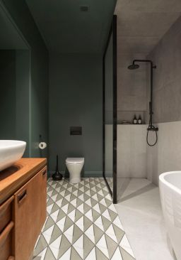 The main concept of the project is the use of the simple methods of working with space by means of color and texture: use of deep colors on the walls and ceilings, combination of various wood textures, cement tiles and ceramic granite…