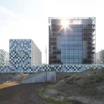 The tallest of the volumes is the Court Tower. The architectural idea is to continue the cultivated parterre gardens from the ground floor level as a greenery cladding on the Court Tower. “Gardens have always existed as part of all cultures and all religions. With flowers and plants representing the over 120 ICC member countries, the parterre gardens will rise up as a green landmark and a symbol of unity, regardless of nationality and culture.” The remaining volumes, the office towers, are draped in a tapestry grid, almost like embroidery. The office façade grid is designed with angle and cut-outs, which allows the light to reflect differently in an almost playful way.