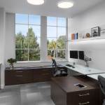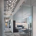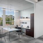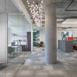 Contrasting frames and planes, varying ceiling heights, novel textures, and unexpected choices of fixtures serve to separate the office’s three domains while providing a seamless and cohesive experience.