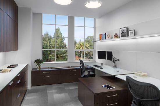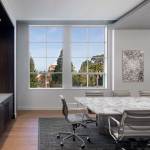 Creating an open, workable and sophisticated environment that feels all of a piece was no small feat in a narrow, rectangular space which, having been built for a single tenant, was never intended to be subdivided. Embracing those constraints created opportunities for a more cohesive and dimensional design. Using the ceiling plane as an integrated component of the overall design gives it as active a role as the floors and walls in delineating this challenging space.