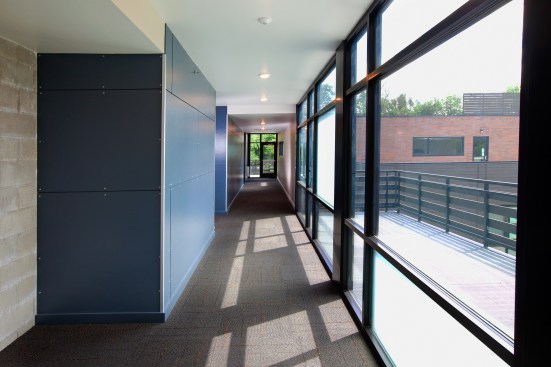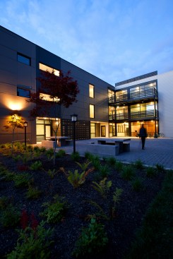 Efficient building forms using contemporary materials such as larger brick modules, a cedar rain-screen system, fiber-cement panels and commercial glazing systems were integral to the design of the campus. Wide expanses of glass along with taller ceilings create an interior-exterior connection flooding the spaces with natural light, increasing the quality of life for its residents. The campus design incorporates sustainable practices such as a community garden, vegetated green roof, storm water collection cistern, photovoltaic array and a permeable paver urban courtyard. These practices, combined with Energy Star technology and cross ventilation, achieved a Silver Level certification through the National Green Building Standard (NGBS).