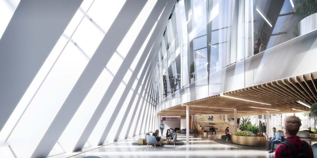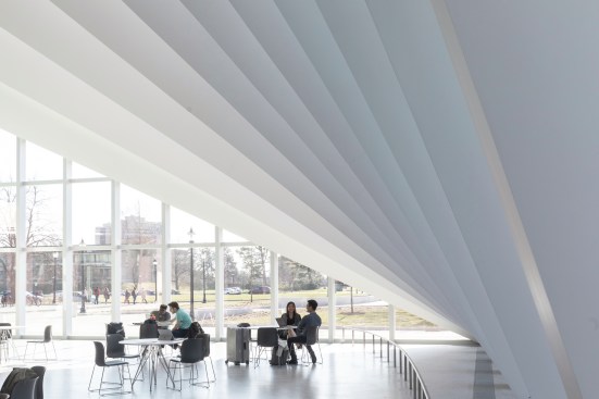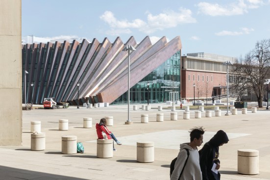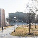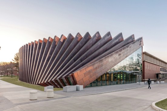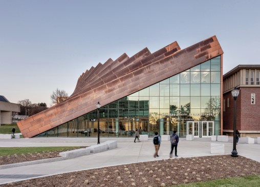 Designed by BIG-Bjarke Ingels Group and Architect of Record Goody Clancy, the copper clad Business Innovation Hub at the heart of the University of Massachusetts Amherst adds 70,000SF of hyper-collaborative study and social space to one of the top-30 public business schools in the United States. The new expansion and partial renovation of the Isenberg School of Management nearly doubles the school’s current space to accommodate Isenberg’s growth in the last decade, while introducing new facilities for more than 150 staff and 5,000 students in undergraduate, master’s and PhD programs. BIG and Goody Clancy were commissioned in 2015 to design a flexible space that inspires and facilitates collaboration for every Isenberg student.