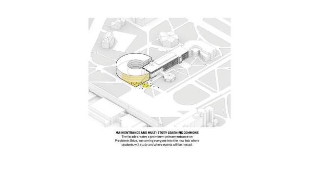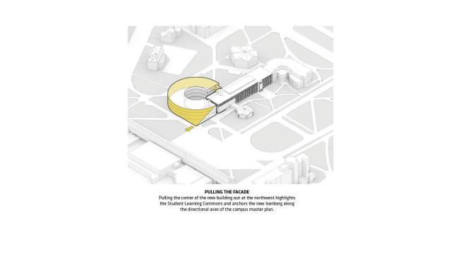 The primary goals of the project are to consolidate departments currently located across campus, house all of ISOM in one coordinated assemblage of buildings, and to create a dynamic interior public space in the form of a Student Learning Commons. The commons are designed to accommodate the dual function of student gathering and study space as well as special event space for guest speakers, award ceremonies, and banquets. New instructional spaces include two-tired hybrid classrooms and one financial analytics classroom, set to stimulate a trading-floor environment. Sustaining ISOM's future growth also requires an expansion of spaces dedicated to specialized centers, increasing staff and support spaces, as well as adding spaces for new faculty in each of Isenberg's growing academic departments.