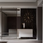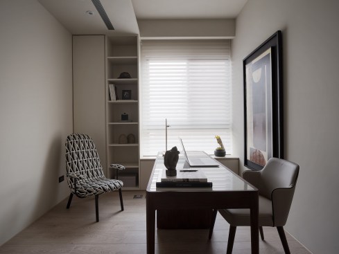 From walls to ceiling, the shared areas feature mineral paint that exudes exquisite craftsmanship. The natural textures, coupled with background earthy tones, capture the Japanese aesthetic of Wabi-Sabi, which celebrates the beauty of transience and imperfection. By fusing Wabi-Sabi from the East with a minimalist Western style, this modern home embraces a remarkable tranquility.