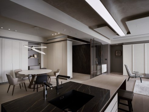 With Island House, interior designer Luke Wang set out to create a home that exudes comfort and livability against a hectic city backdrop. Describing the design concept, Wang said: “Like an island oasis, this space is separated at a metaphysical distance from the metropolis just beyond its borders, meaning the occupants can enjoy quietude and tranquility on returning home.”