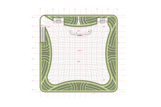 For this purpose we first designed a large square covered by a roof 57.5 meters wide that covers the entire project area and allows you to use it in case of bad weather.