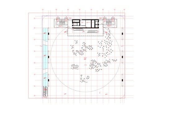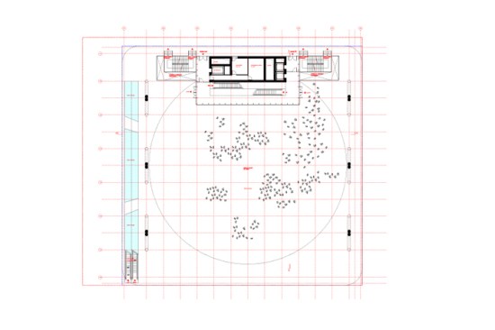 For this purpose we expected an absolute form of circular type on the first floor of the palace, suspended from the large roof consists of one large open space with a regular grid of circular thin pillars steel rods.