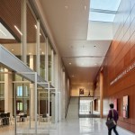Prior to the addition, the large majority of classrooms were windowless, lacking access to daylight. In response, the design team aimed to provide more porosity in office and classroom environments to establish connections to outdoors. The design for the building is organized to create deliberate connections to views outside even if an occupant is standing at the heart of building. The design team also implemented numerous sustainability goals in energy, water, air quality, construction, and waste and recycling. Team – Are there other sustainability details we should include?