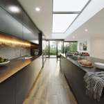 How can we forget the kitchen, it follows up the parallel style. It is covering the minimum space of the area and looking beautiful. The large sliding windows in front of the kitchen area let you enjoy the green view of the outside. The recessed spotlight and natural light creating an equal balance of lighting in the kitchen.
