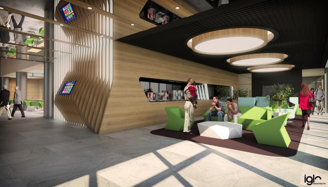 Reception , lounge, play area, prayer rooms, kitchen, WCs, and offices are on the ground floor.