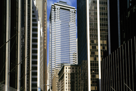 The mid-block site of the fifty-one-story tower extends from Wall Street through to Pine Street. Across the street is 55 Wall Street, an 1842 landmark, from which development rights had been transferred.