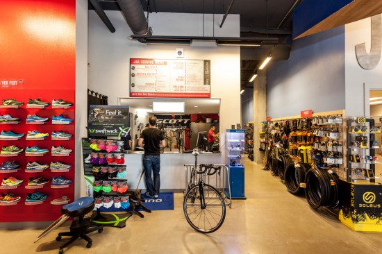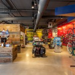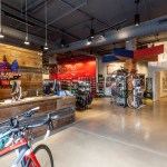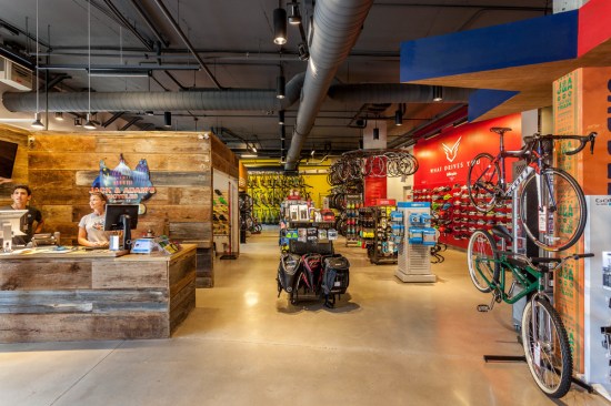 Reclaimed wood from a local barn defines the genius loci of this Austin bicycle shop. As a retail and service shop, this interior fit-out is characterized by clean, efficient, open space.