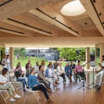 The design allows for multi-use flexibility, so that the building can support performances, events, residencies, and more, sometimes simultaneously. The theatre will seat up to 230 patrons in the main performance space, with an array of seating and stage configurations. The building will feature two lobbies with sliding doors, which will create multiple entrances and exits to the building. The lobby on the west side of the building will serve to welcome visitors in from the spacious artist quadrangle, and will also provide a covered and ventilated space for pre-show talks alongside a new exhibition space.The lobby on the east side of the building will serve as a warm-up and rehearsal space for artists, and can also host receptions and meetings as needed. This embrace of the site and nature, balanced with a need to push the boundaries of dance, embodies the ambition for the theatre and captures the magic of performing at Jacob’s Pillow. Contributions from Indigenous artists to the design will include visual art installations, a medicinal garden with local and indigenous plantings near the entrance of the building, and a fire pit for gatherings and celebrations.