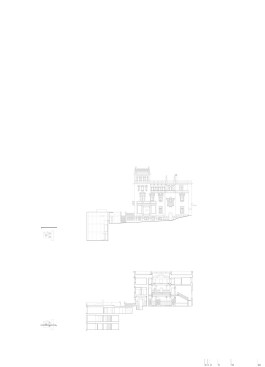 The new complex completely conserves all the common spaces and the valuable elements of the decoration. The outer bay of the upper floors is intended for study rooms and accommodation, excluding some rooms; The basement accommodates different technical rooms, apart from the link with the new volume. It presents a linear structure of functional nature: it has three floors, and completes the program until it reaches a number of around fifty dormitories for students, all individual. The requirement of the orientation, given the rainfall, leads to opt for a glass curtain wall in its enclosure.