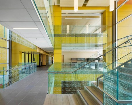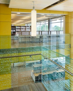The architecture is a contemporary expression using current materials and methods. The Archives has precise technical requirements with significant areas of glass that provide natural light and create an open and inviting appearance in public and staff areas. The glass uses ceramic frit printed with digital exerts from the collection. The building contents are now permanently “inscribed” onto the fabric of the walls that protect them.