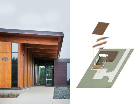 This project, located on the Finkbine Golf Course, is for the purpose of providing an indoor training/practice facility for the University of Iowa men’s and women’s golf team. It is located at the west end of the existing outdoor driving range at Finkbine Golf Course.