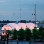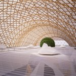 Despite construction problems, the abrupt replacement of the engineer, months long construction delays, and the necessary addition of a PVC membrane over the paper membrane for fire safety issues, the Pavilions has been a great leap forward in the field of paper architecture. The main theme of the Hanover Expo was the environment and the basic concept behind the Japan Pavilion was to create a structure that would produce as little industrial waste as possible when it was dismantled. The goal was either to recycle or reuse almost all of the materials that went into the building. The first structural idea was for a tunnel arch of paper tubes, similar to the Paper Dome. However, the Paper Dome was limited by the high cost of wooden joints. I proposed a grid shell using lengthy paper tubing and without joints to my collaborator, Frei Otto. The tunnel arch would be about 73.8m long, 25m wide, and 15.9m high. The most critical factor was lateral strain along the long side, so instead of a simple arch I chose a grid shell of three-dimensional curved lines with indentations in the height and width directions, which are stronger when it comes to lateral strain.
