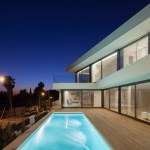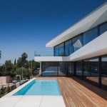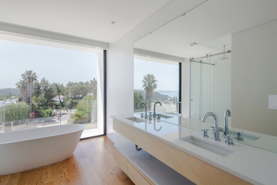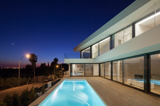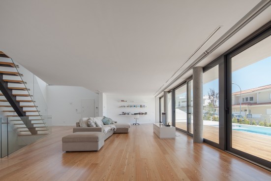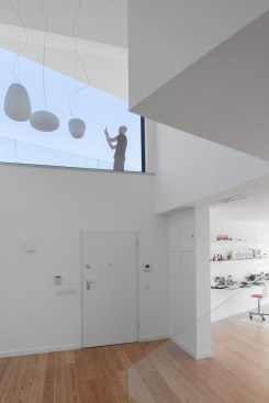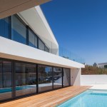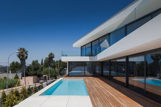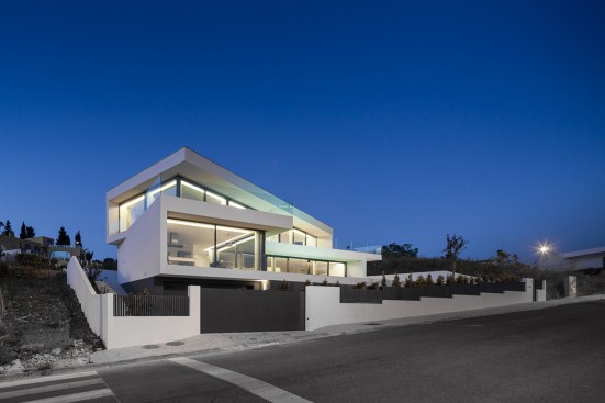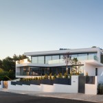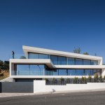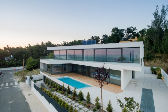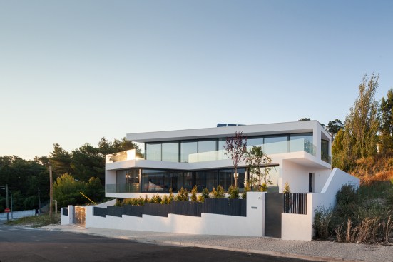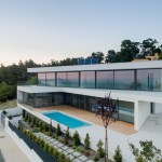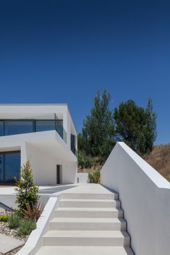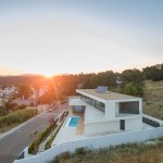 Located in one of the highest points in Oeiras, Portugal, with a view over the Tejo river and the Atlantic ocean, this house is based on a trapezoidal terrain which formed the concept for the creation of this project.