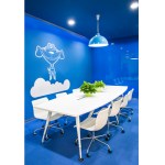 The methodology of the project understood that the individual workspaces needed to be a functional, more neutral backdrop for the diverse and flexible communal areas that foster creativity, innovation, and team work. Diversification was pivotal in making these goals a reality. We infused difference in all aspects of the design from function and shape to color and scale.