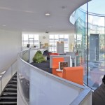 a concentring way. Movements are interspersed with reception desks regularly
