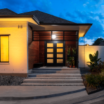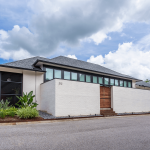 Of the three typologies allowed by the design covenant, Caribbean was chosen. This typology allowed for a courtyard to veil the contemporary window wall, deep roof overhangs to shed the water and shade the walls, and a slab foundation to minimize steps for the clients concerned about aging in place. To create consistency between the modern interior and the more traditional exterior of the home, the ipe and white painted brick materiality is used both inside and out.