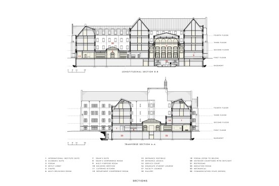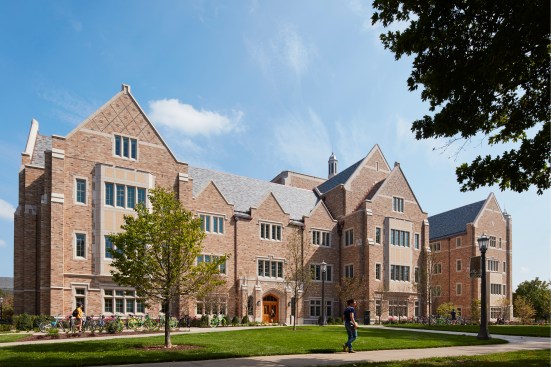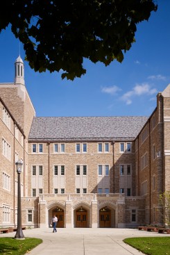 The building’s Collegiate Gothic expression and palette of materials conform to the University’s planning directive that build upon Notre Dame’s distinct architectural character. The plan configuration is compact and affords ample opportunity for natural illumination. This building will meet or exceed the University’s ambitious goals for enhanced performance and sustainability, and its stipulated requirement that it be ‘built for the ages’.