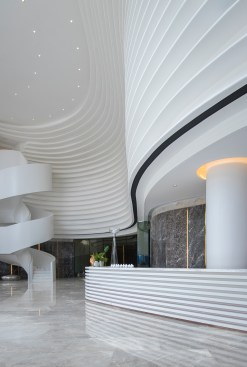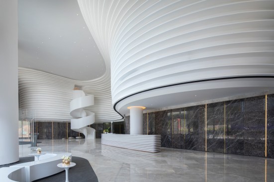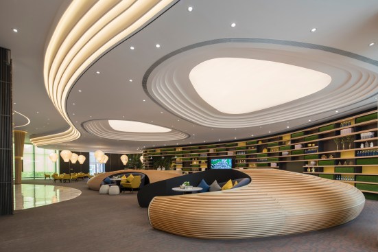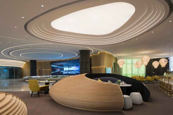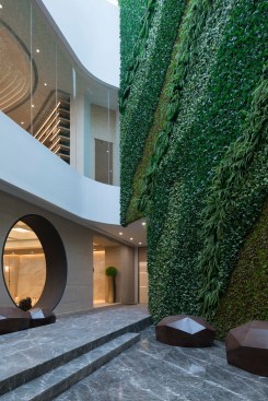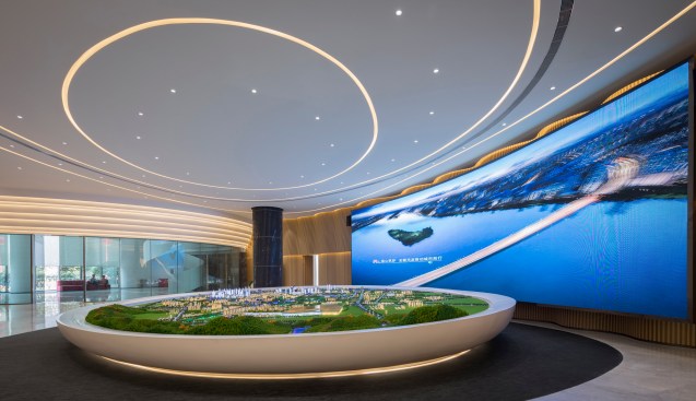 HENGMAO Group wished to build a modern and unique sales center and hired AOD to design the project. The fashionable arch shape design expresses the technological feel while the green plants bring in the breath of nature.