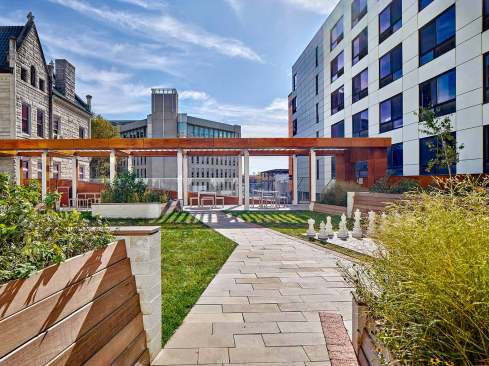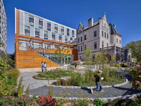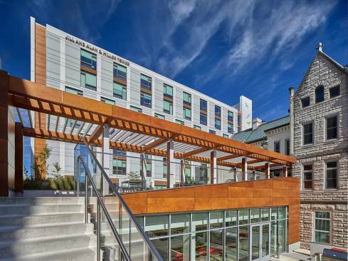 Before the Philadelphia Ronald McDonald House’s (PRMH) $50 million expansion and renovation, they were turning away four out of five families on their first request to stay due to a lack of available accommodations. EwingCole developed a site concept so that the new, eight-story guest room tower complements the existing 19th-century Victorian mansion as a backdrop and allows for a dual-level patio and gardens. On the interior, every element of the new entrance, kitchens, play areas, and guest rooms were purposefully designed to create a feeling of openness, comfort, and safety. High-functioning rooms are equipped to support families across a variety of medical and personal needs and situations, including an immunosuppressant floor. Now, the PRMH can accept twice as many families annually and provide them with the care and comfort they need while their children await or undergo treatment at local hospitals.