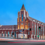 The Fertitta Hall project required a large amount of custom shaping for Gothic architectural style arched windows. Eight of the fixed windows spanned 6’ wide by 40’ tall sweeping into an artful pointed apex.