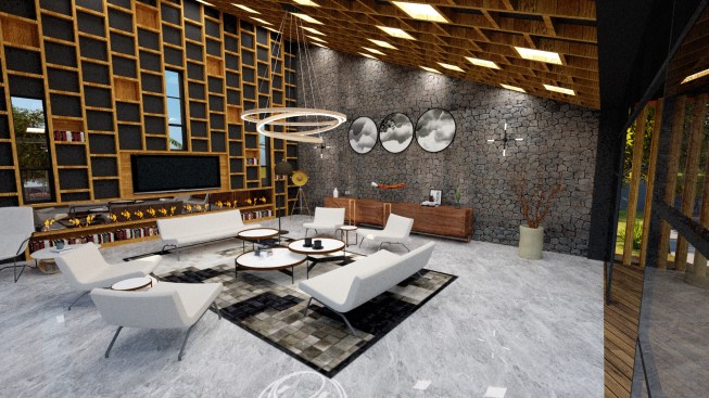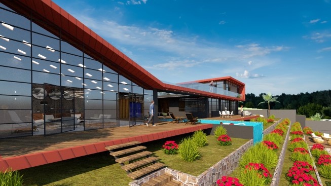 Project is well located in Rwanda which the eastern African country. Kigali, the capital of Rwanda, has a climate that does not need any mechanical ventilation system 12 months a year. This climate feature is a feature that is not found in almost most countries in the world. In most countries, extreme temperatures or cold weather emerge as an important limiting design input in the design of buildings.The fact that the air is in such a balance that will provide comfort to the human body creates a design input that will allow the spaces to be used in Rwanda to leak and enter the spaces of the house without creating a closed volume together.Handled in this way, the villa project has been handled by placing an outdoor space between the living room and the kitchen, and establishing the harmony of outdoor and indoor use. Instead of going directly to the kitchen in the hall, you can enter the space, which is a semi-open courtyard, and then access other parts of the house. This semi-open space, which is first entered when entering the house, is also the first place used when coming from outside.This semi-open space also hosts the swimming pool. By placing the pool between the living room and kitchen of the house, a privacy area has been created for the users of the house.The saloon of the house has a roof slope that reaches a height of 2 floors. The roof movement that forms the saloon flows towards the 1st floor of the house and is the main factor in the formation of the architectural language of the house with a continuing slab movement.