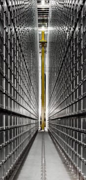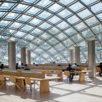 The problem was to store 3.5 million books with an Automated Storage and Retrieval System (ASRS). The expectations in the brief suggested to house those in a well designed “Box” above grade. In an effort to infringe as little as possible with the open space, make the Reading Room and the Preservation Department the most pleasant space to be in and in line with our approach to challenge habitual conventions, we opted to put the books below grade, where their environment can be better controlled to achieve the desired constant temperature and humidity of 60 degrees, 30% RH – at less cost. The people oriented spaces could thus be located at grade in a minimal elliptical glass dome, which fits the context, because it defies conventional relationships.