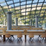 The structural grid-shell of 120 x 240 feet and the insulated glazing represent a very minimal and intelligent system for mediating between the varying exterior conditions and the desired interior comfort.