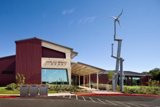 The City of San Antonio paid a visual tribute to the traditional Texas red barn with the design of the new John Igo Branch Library, the latest addition to the City’s library system. In a nod to the area’s agriculture history, the barn-like facility sits in an open field while the parking lot weaves in and out of native Texas trees. The quiet, rural setting is in paradox with the reason the addition was built: the San Antonio Library System needed to catch up with northwest San Antonio’s exponential growth.