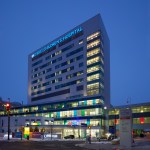 Every element of the new facility was designed with patients and families in mind. The massing of the building fans from the street edge as it transitions from the podium to the tower, decompressing the campus at the pedestrian level and creating a hanging garden effect on the entry façade providing a welcoming experience. The elevator lobbies and public areas on each floor face the main entryway with floor-to-ceiling windows, providing campus views that orient visitors within the building. Each floor’s unique theming, color scheme and environmental branding assist families and visitors with wayfinding, as well as playrooms and public spaces where patients and their families can gather and seek respite. Space such as the Fisher-Price/Mattel Family & Child Support Services Floor was prioritized for family respite, education and care. This sanctuary away from clinical and public areas located on a middle floor includes a Family Resource Room, laundry amenities, kitchenettes, family lounge, winter garden, non-denominational chapel and meditative roof garden, providing much needed relief for patients and their families.