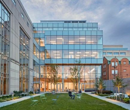 New program spaces included open and enclosed study space for students, a café, reimagined administrative and faculty spaces to encourage cross-institutional collaboration, an expanded conference and event space, new centers for research and new, technology-rich learning spaces. The north end of the Pinkard Building was renovated and clad in a more transparent skin to allow the building to enliven the street and create a welcoming learning environment.