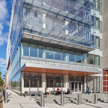 The Johns Hopkins University School of Nursing formerly occupied three buildings on the East Baltimore campus—the Pinkard Building, and Student and School of Nursing Houses. Designed and built in the early 1990’s, the Pinkard Building is a five-story facility that serves as the central learning and work space for School of Nursing students and faculty. The building was designed for a significantly smaller student population and at a time when the school offered undergraduate education. The smaller, residential-scale Student and School of Nursing Houses provide student study and lounge space, and house administrative offices, respectively.