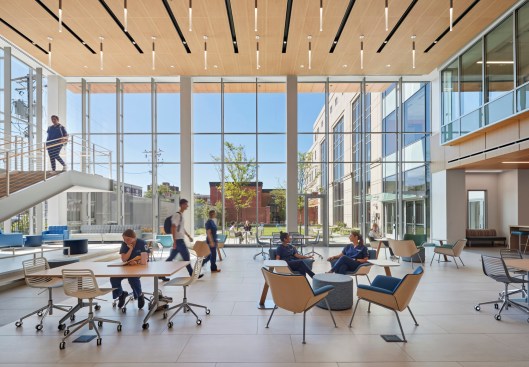 The Hord Coplan Macht / Rawn team provided programming and planning/design services for the new School of Nursing. The school is transitioning from an undergraduate program to a graduate and PhD nursing program. The goal of the project was to explore innovative space planning to maximize space utilization, improve learning and research, accommodate expanded central student services, minimize long-term operating and maintenance expenses and increase overall efficiency within the school.