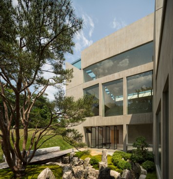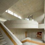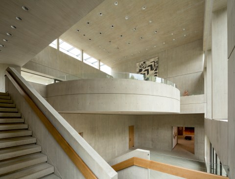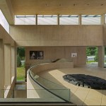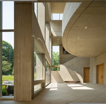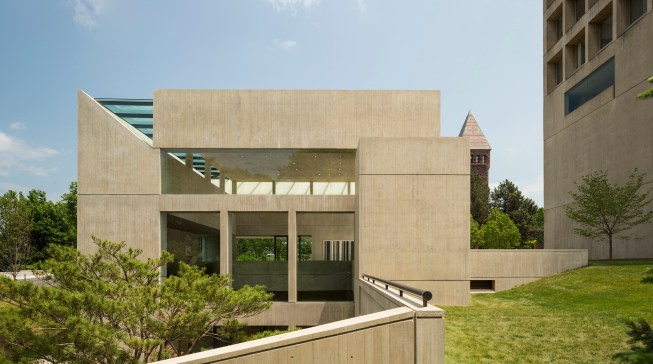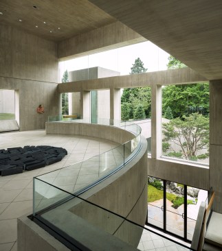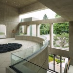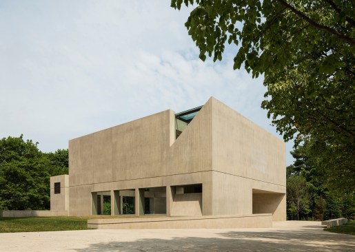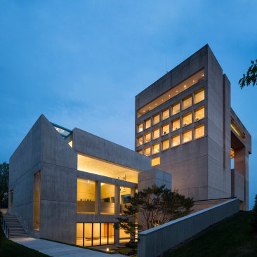 Retaining the buff-colored, architectural board-formed concrete of the earlier structure, the addition establishes a clear visual connection with its predecessor while affirming its independent identity. The new building houses the museum’s significant Asian art collection and includes a 150-seat lecture room, art studio, galleries, administrative space, and a large art-storage area. In quiet contrast to its monumental neighbor, the 17,200-square-foot addition is integrated into a sloping swath of lawn north of the existing museum.