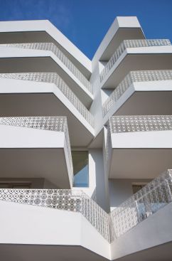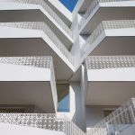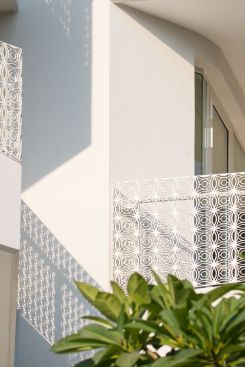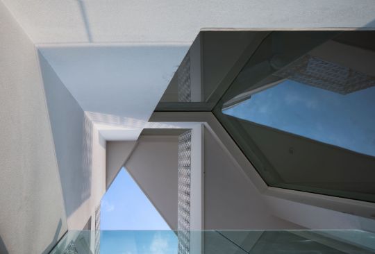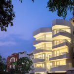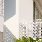 At the building level, the volume has been strategically planned to open up the visual angles facing the park and setting up a series of ‘fluttering’ walls, with an orientation that is aligned to the movement of the sun. The resultant massing presents mutual shading in the building which cuts the harsh summer sun whilst allowing the winter sun to break into the building. The core massing in relation to the exterior windows and balconies is designed such that the green-scape is visually accessible from all the interior parts of the house. The interspaced voids and balconies in relation to the exterior openings provide natural light, ventilation and view of the green-scape throughout the building. The deep ‘sun-shaped’ balconies serve as a nuanced vertical shading element that block the harsh summer sun, while still permitting the winter sun in, by this means increasing the usability of the balconies throughout the year. This helps in bringing the insides out and outsides in.