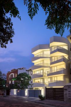 62 Jorbagh occupies a unique site in the heart of NCR, seamlessly amidst an urban context. With a plot size of 3375 sq. ft and a total built up area of 12000 sq. ft, the program required a basement, a stilt floor, four 3-bedroom apartments, each with a helper’s quarter and terrace.