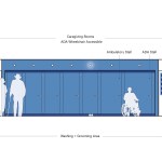 Dimensions of Stalls: Varies – 3’6” x 5’2 typical stalls, 6’10” x 5’2” ADA stalls, 10’2” x 5’6” Caregiving Rms