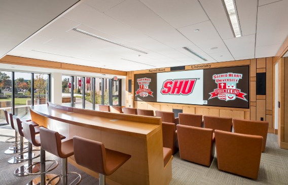 Sacred Heart University’s new residence hall welcomes and encourages its residents by creating communities within communities so that students of every sort can find a place of their own. Its modern design is at once striking and warm, a home away from home.