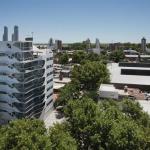 Located on a small corner lot adjacent to the downtown and riverfront neighborhoods in Rosario, Argentina, Jujuy Redux is a mid-rise apartment building designed by Los Angeles–based practices P-A-T-T-E-R-N-S and Maxi Spina Architects. The poured-in-place concrete structure, which boasts 13 apartments, a marble-clad lobby, and a rooftop terrace, is lined with balconies that open out onto the street corner. The articulated form of these balconies break up the massing of the building, and with apertures, integrated benches, and LED lighting, the design provides social spaces that can be tailored to the needs of each resident.