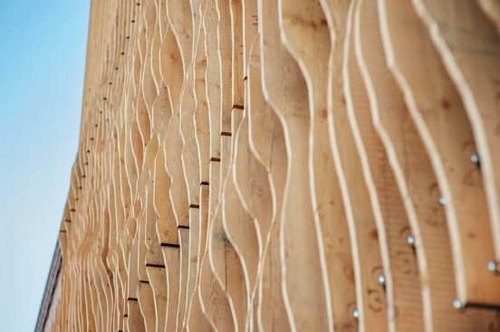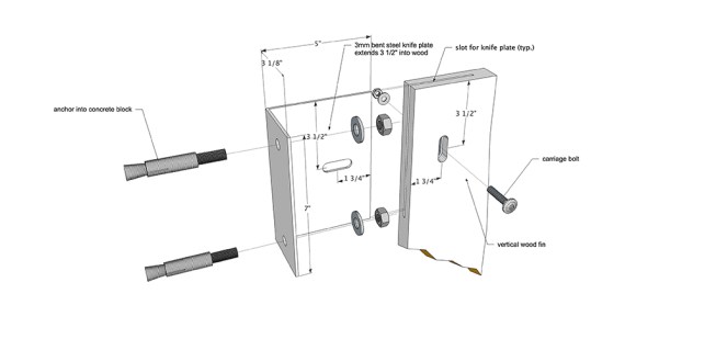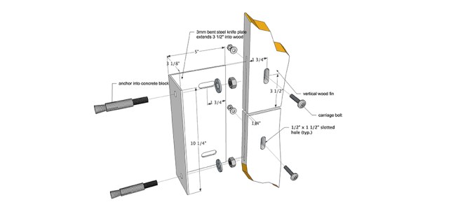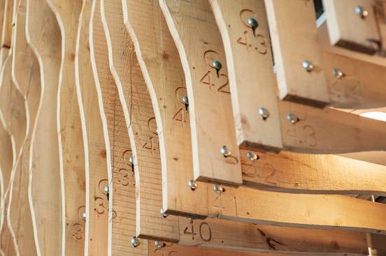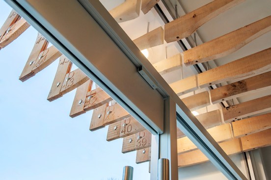 Working within the limits of these constraints, we developed a screen comprised of vertical fins made from 100 year old fir reclaimed from an abandoned Alberta granary. The screen was designed within the narrow parameters of ‘building signage’ and satisfied the ARP through its use of natural material. Another serendipitous outcome of using the 100-year-old fir was its dimensional stability given that the wood had acclimated to the weather in Alberta, drastically reducing its tendency to warp or crack.