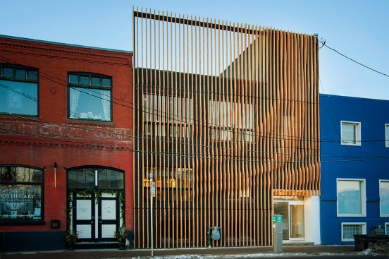 MoDA was approached in 2013 to reimagine an existing 10,000 sq. ft. two storey building in the historic Calgary neighborhood of Inglewood. Aside from the main feature of the expressive exterior screen, the project also involved a complete gut and renovation of the interior, the addition of a new exit stairwell, enlarging the existing windows and front entry, extending a stair to the roof, and bringing the building up to current life safety and code standards.